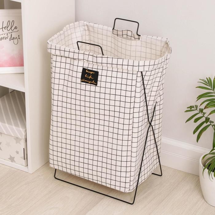 Корзина универсальная складная «Клетка», 40×26×50 см, цвет бело-чёрный