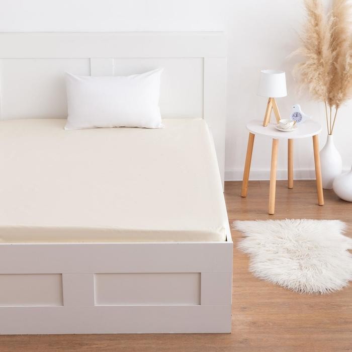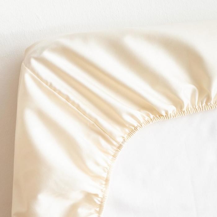 Простыня на резинке Этель 140*200*25 см, цв. бежевый, 100% хлопок, мако-сатин, 128 г/м²