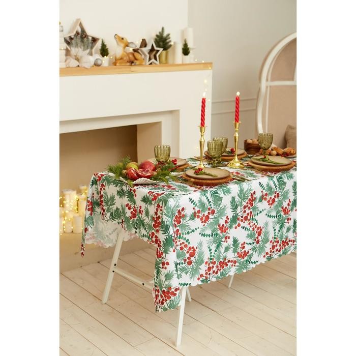 Скатерть Доляна «Новый год: Сhristmas berries» 110*145 +/- 2 см, 100% п/э