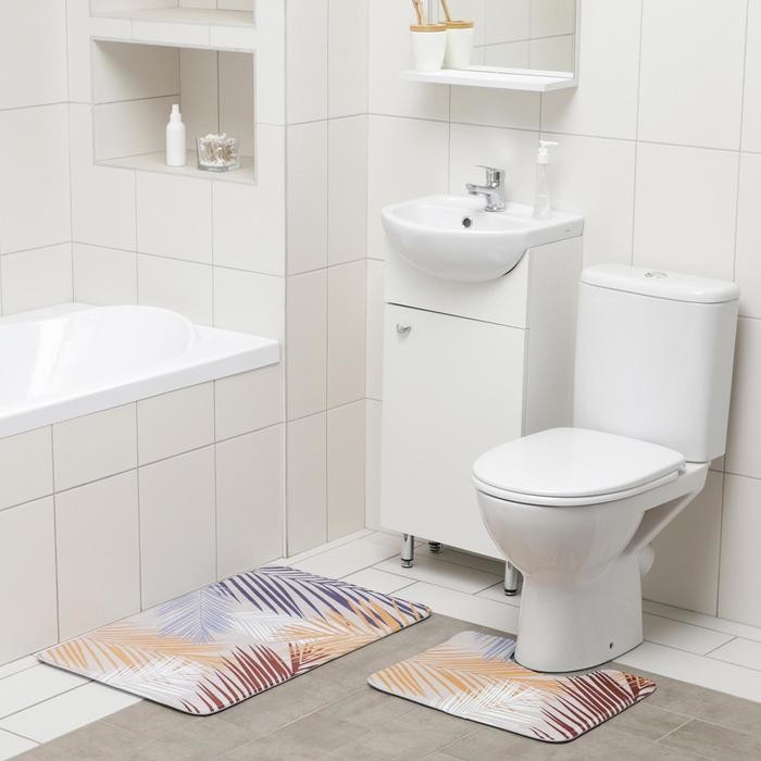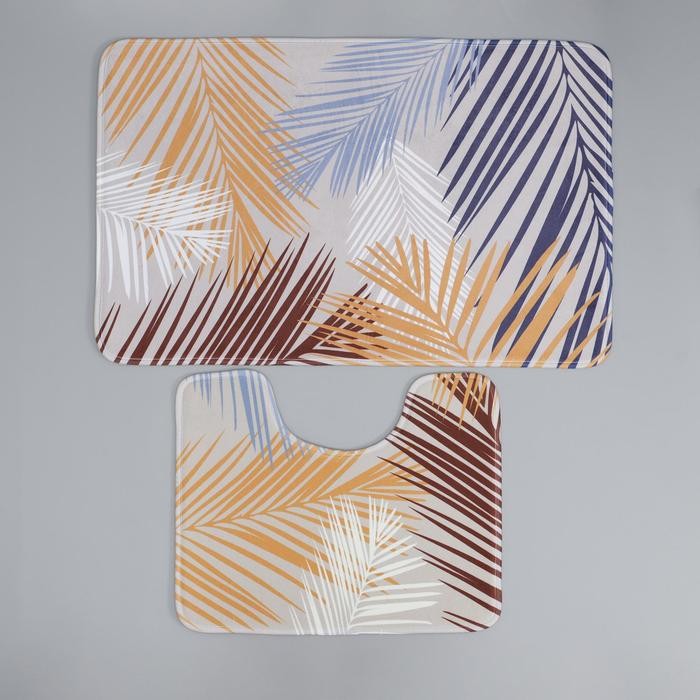 Набор ковриков для ванны и туалета Доляна «Тропический», 2 шт: 50×80, 40×50 см
