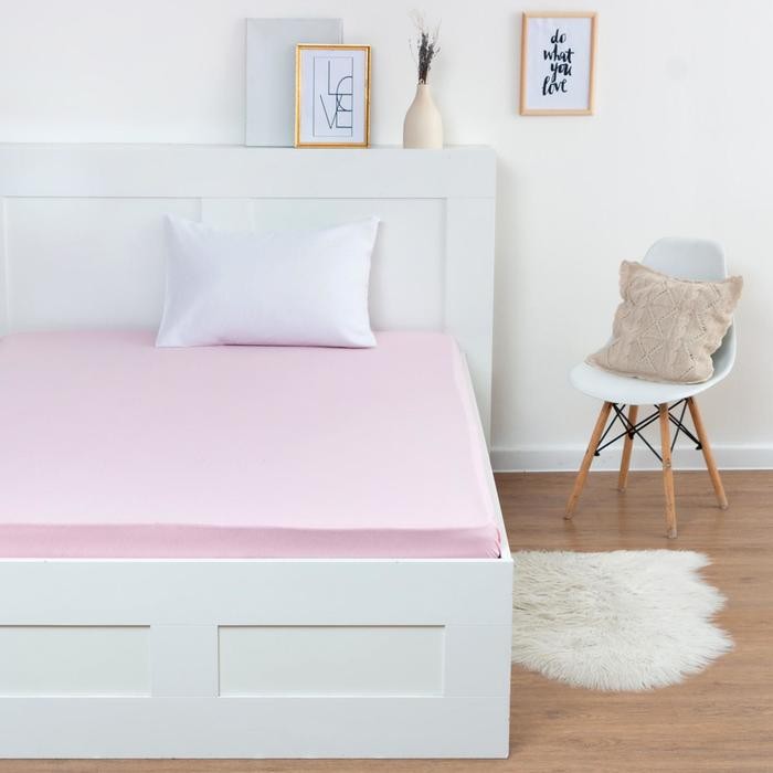 Трикотажная простынь на резинке 160х200х25см, розовый кулирка