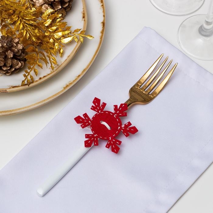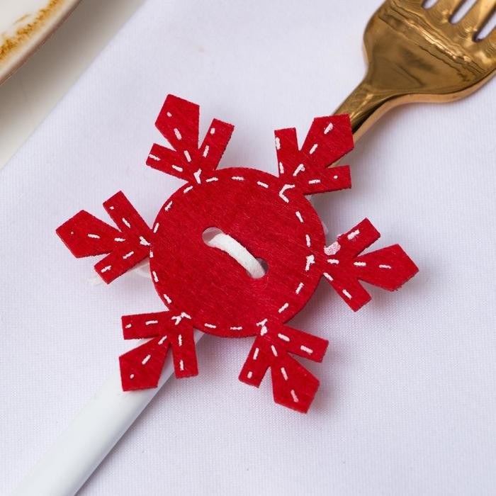 Набор для декора столовых предметов «Снежинка», 4 шт, цв.красный 6×7 см, 100% п/э, фетр