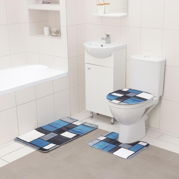 Набор ковриков для ванны и туалета Доляна «Палитра», 3 шт: 50×80 см, 50×40 см, 31×43 см