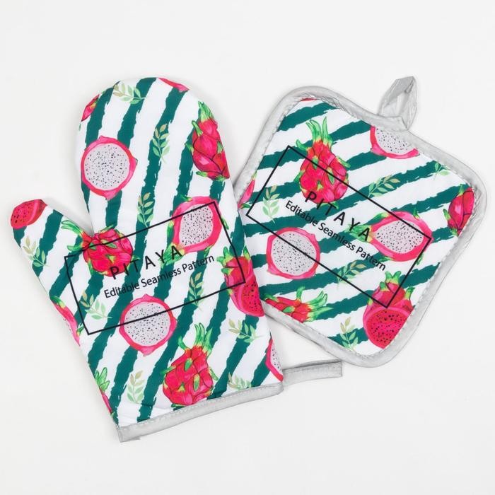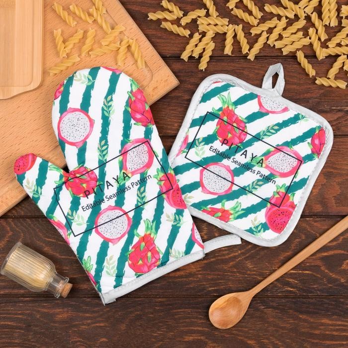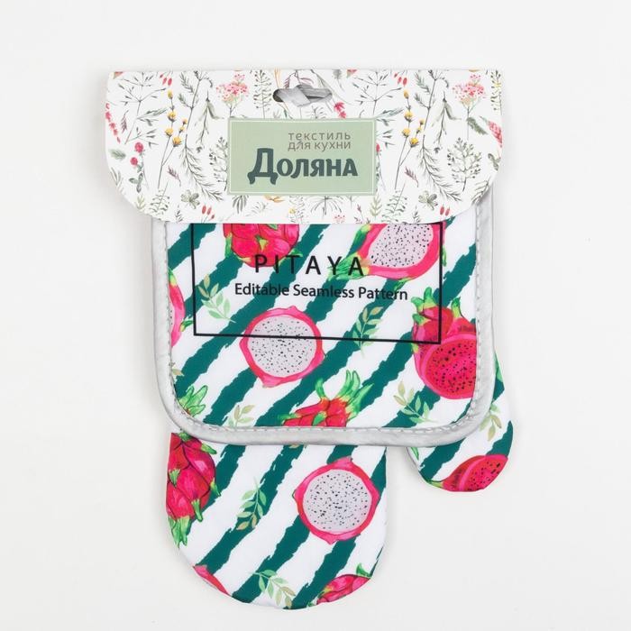 Кухонный набор Доляна «Папайя» прихватка 17*17 см, варежка-прихватка 26*16 см, 100% п/э