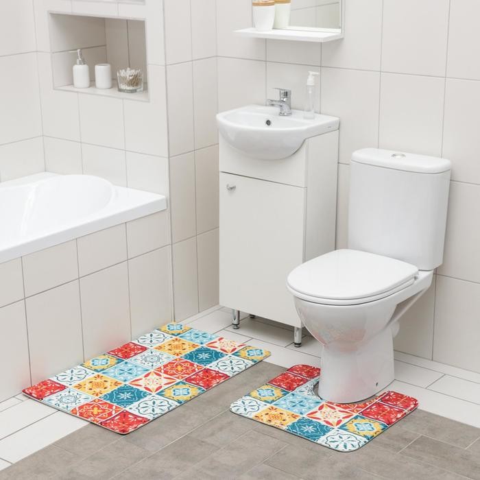 Набор ковриков для ванной и туалета SAVANNA «Мозаика», 2 шт: 50×80 см, 40×50 см