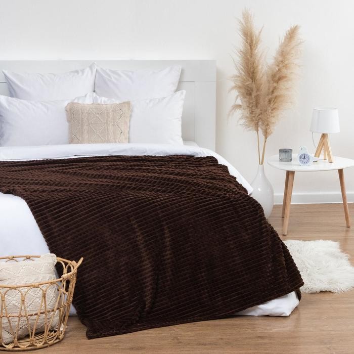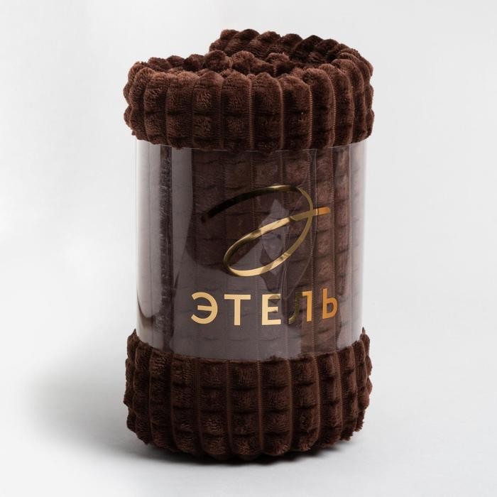 Плед Этель «Клетка» 180*200 см, цв.коричневый, корал-флис, 240гр/м2, 100% полиэстер