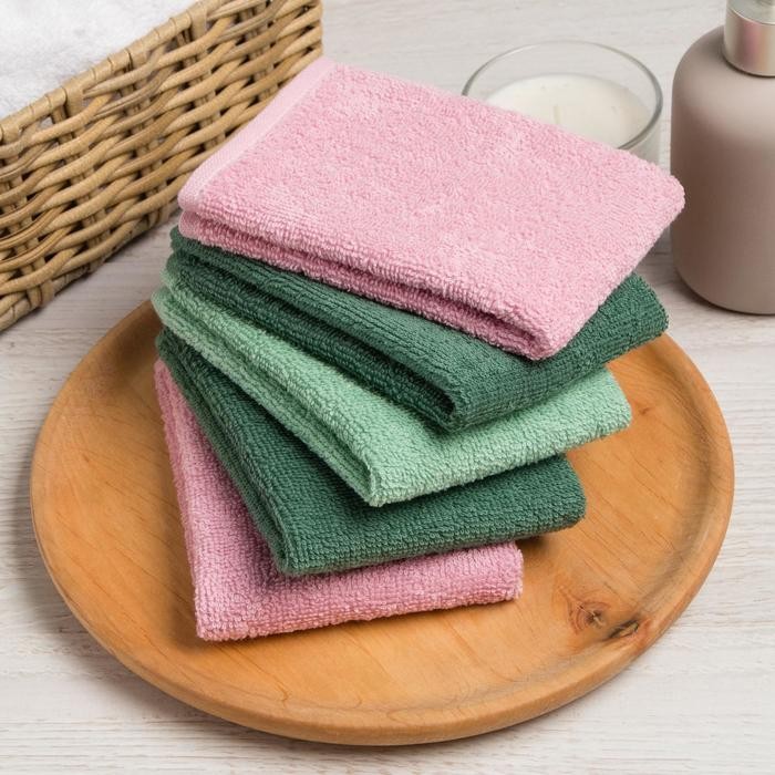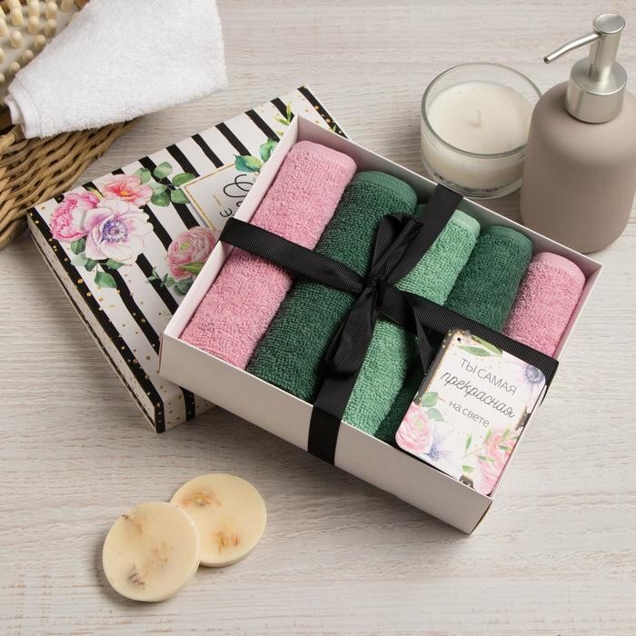 Набор махровых салфеток «Счастье это ты» 30×30 см -5шт, 100% хл, 340гр/м2