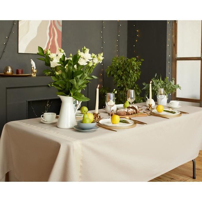 Скатерть «Этель» 110×165 см, цв. кофейный с золотой нитью, 100% хлопок, 163 г/м2