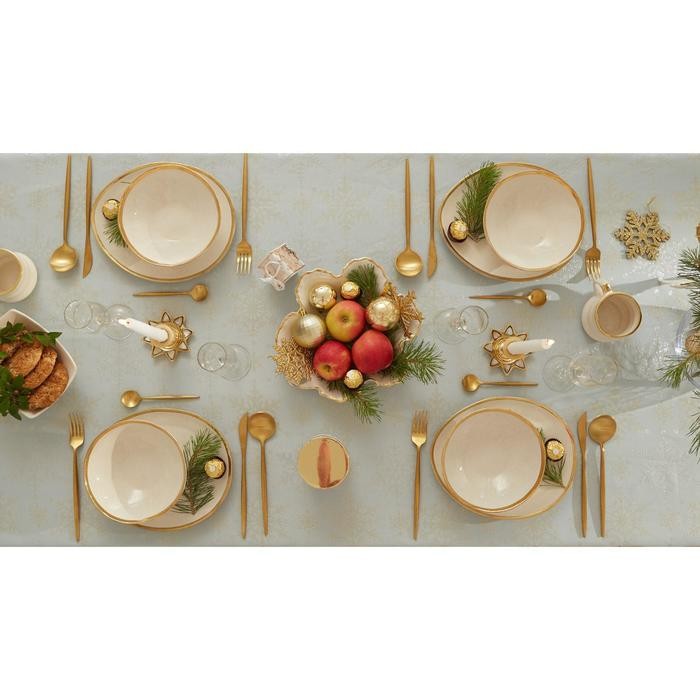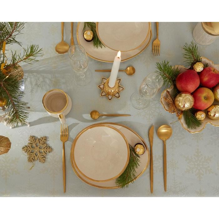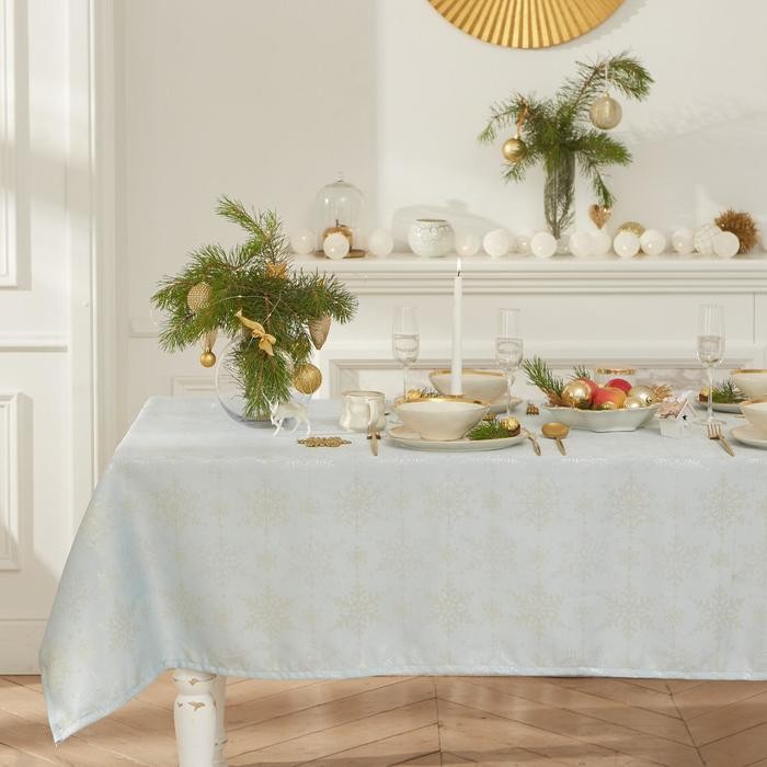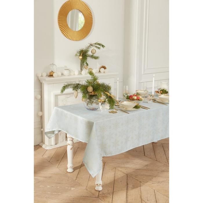 Скатерть Этель «Новый год: Снежинки» цвет голубой, 142*220 +/-3 см, 115 ±10 гр, 100% п/э