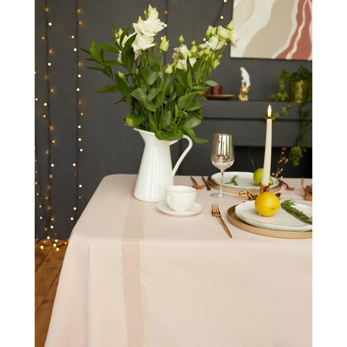 Скатерть «Этель» 180×165 см, цв. пудровый с золотой нитью, 100% хлопок, 163 г/м2