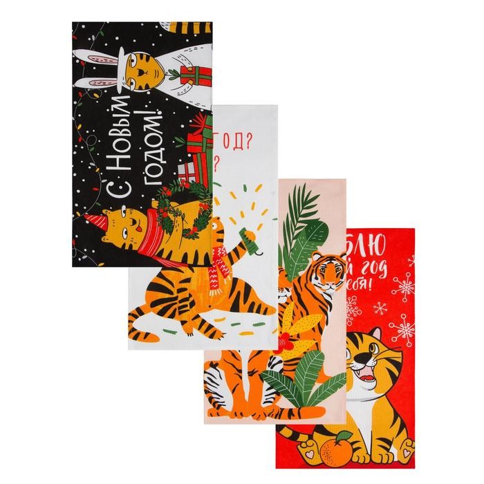 Набор кухонных полотенец Доляна «Любимый праздник» 35×60 см-4шт., 100% хлопок, 160 г/м2