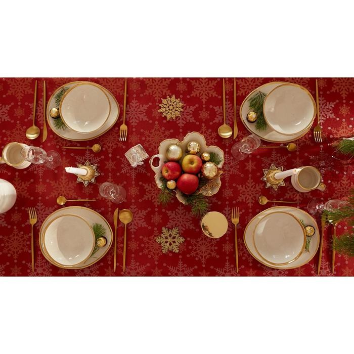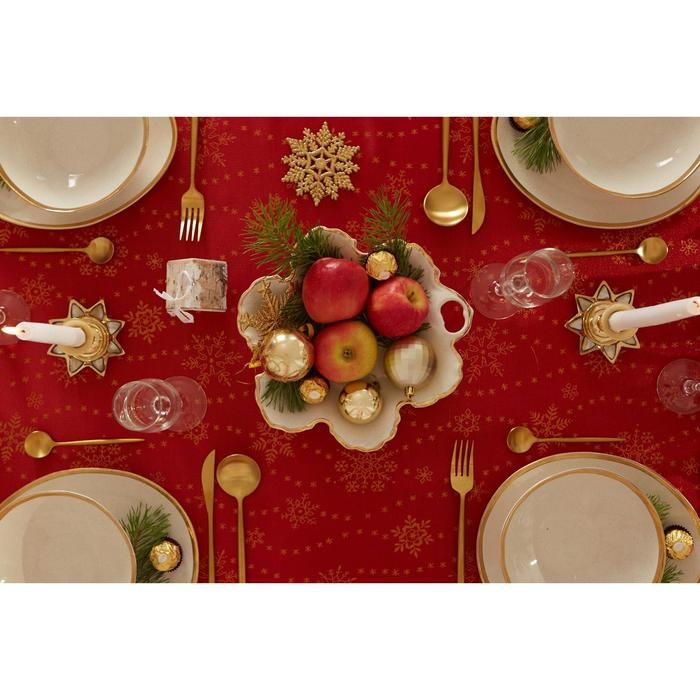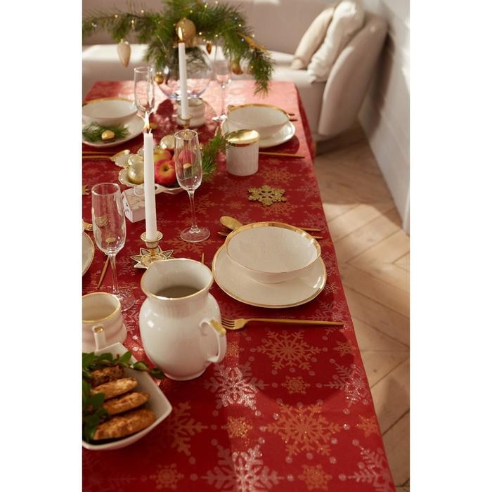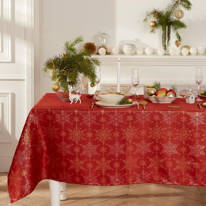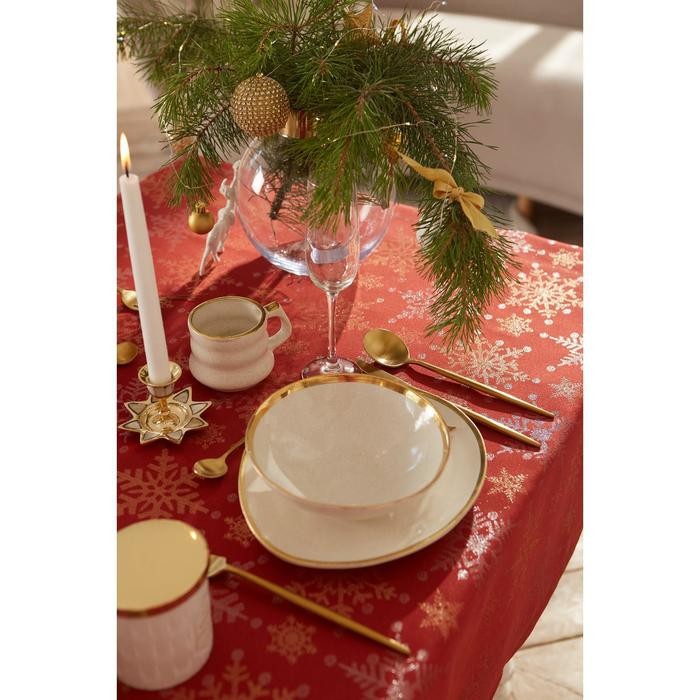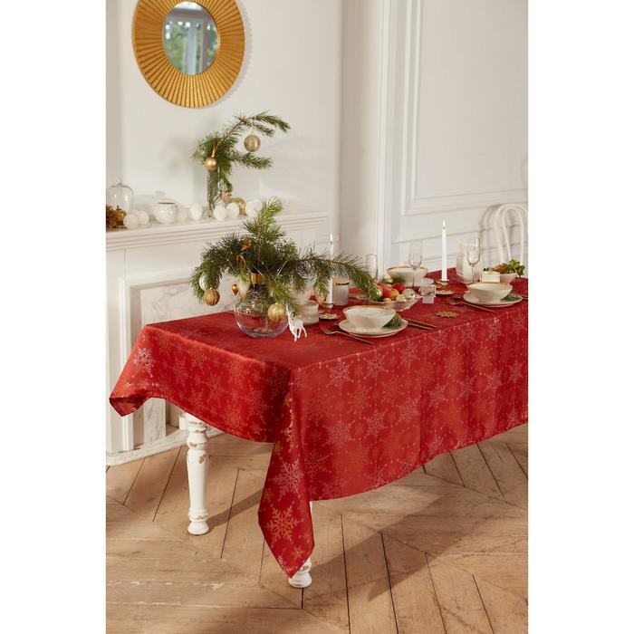 Скатерть Этель «Новый год: Снежинки» цвет красный, 142*220 +/-3 см, 115 ±10 гр, 100%