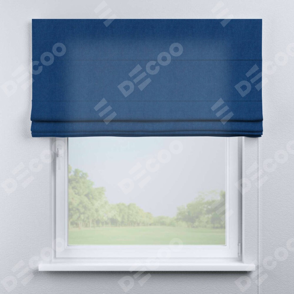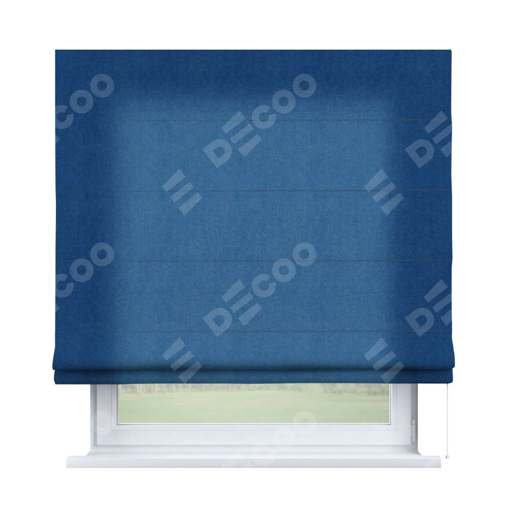 Римская штора производителя «Cortin», используется для проёма, пошита из ткани вельвет синий, артикул ткани 85554. Имеет универсальный механизм и подходит для монтажа: на потолок, на стену и в нишу.