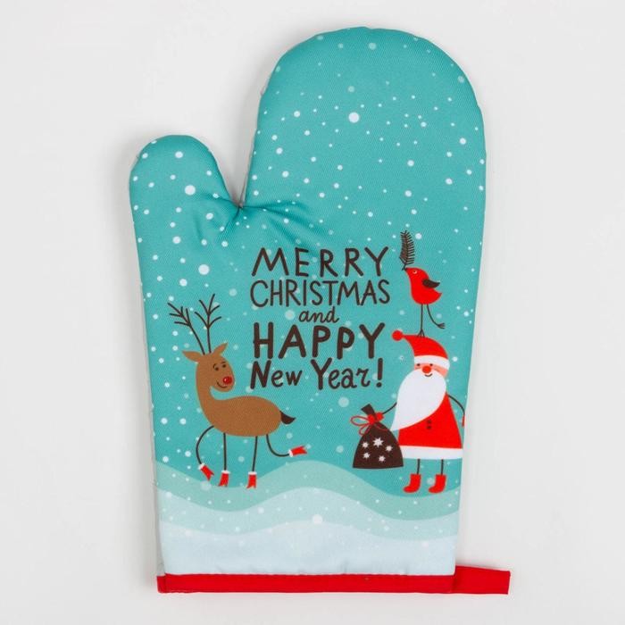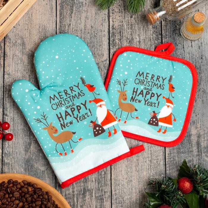 Кухонный новогодний набор Доляна «New Year», прихватка 17*17 см, варежка 26*16 см,100% п/э
