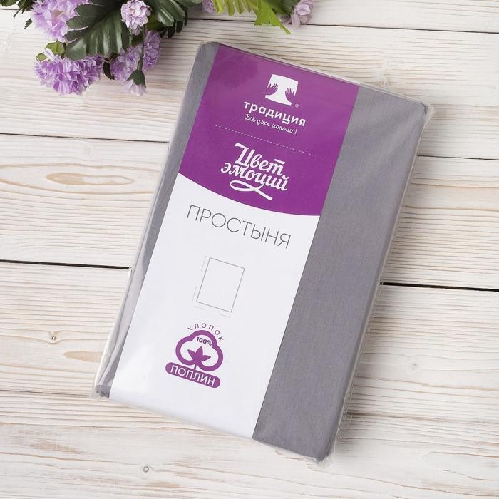 Простыня Евромакси 217х240см Цвет эмоций серый, поплин 118г/м хл100%