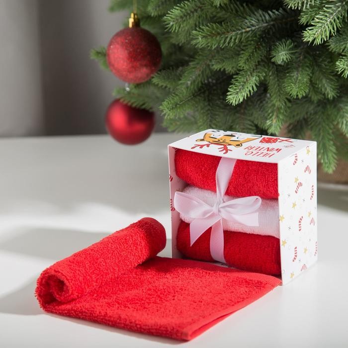 Новогодние полотенца (подарочный набор 3 шт.) Этель Hello winter 30×30 см, хлопок 340гр/м2