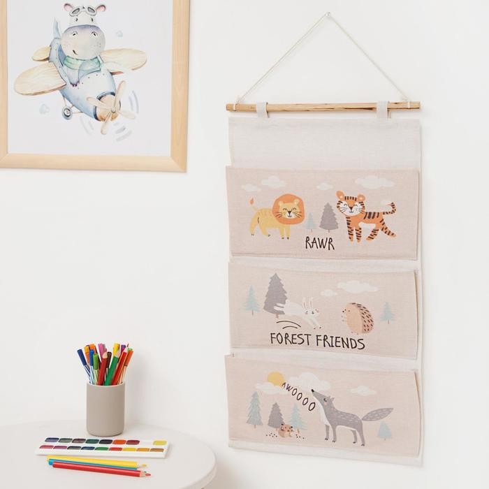 Кармашек текстильный Этель «Forest friends», 3 отделения, 34*63,5 см