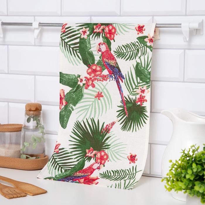 Полотенце Доляна «Попугаи» 25×50 см, 100% хл., вафельное полотно 160 г/м2