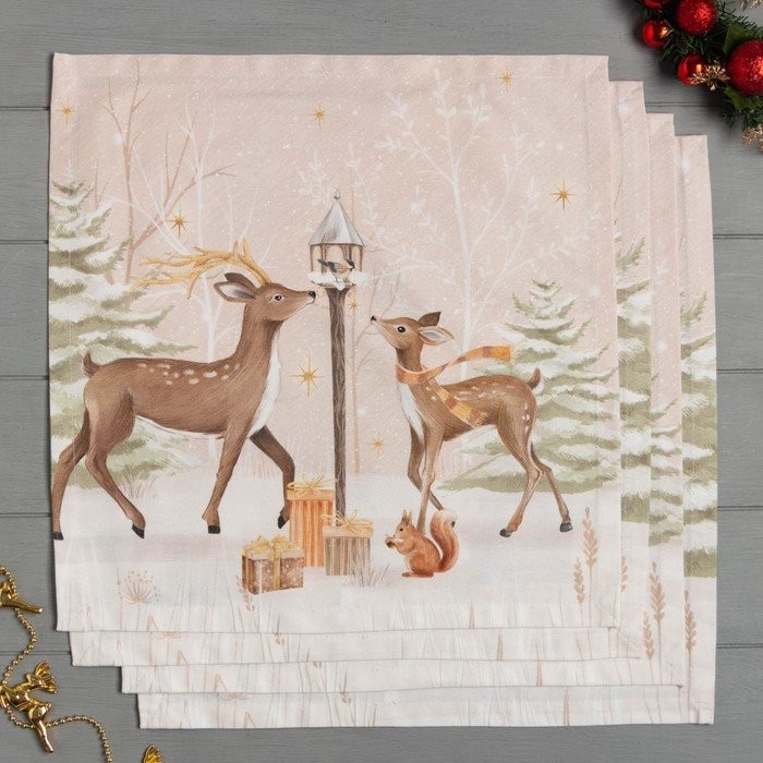 Набор салфеток «Этель» Christmas snowman 40х40см 4 шт, 100% хл, саржа 190 гр/м2