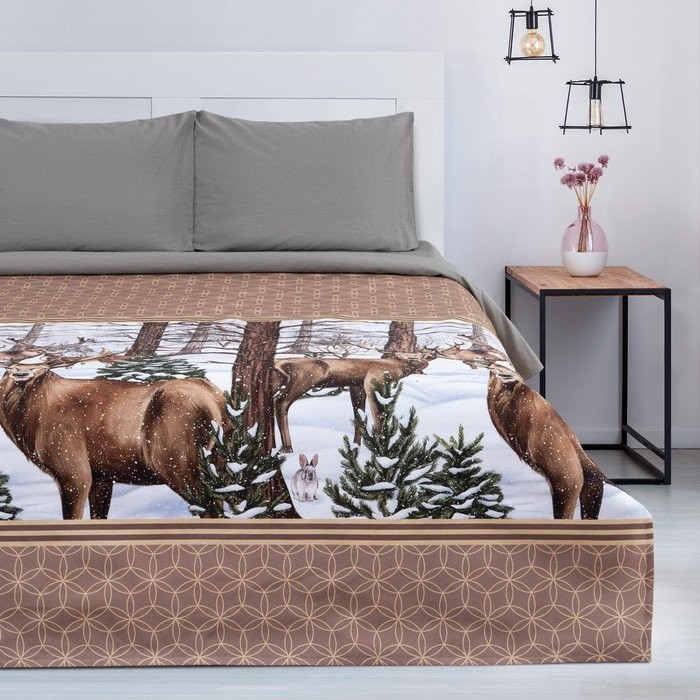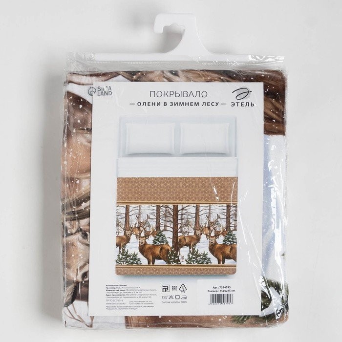 Покрывало «Этель» евро Олени в зимнем лесу, 210*215 см, 100% хлопок