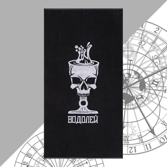 Полотенце махровое Этель «Знаки зодиака: Водолей» чёрный, 67×130 см, 420 гр/м2, 100% хлопок