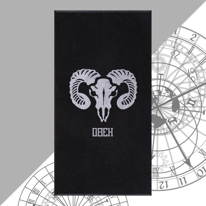 Полотенце махровое Этель «Знаки зодиака: Овен» чёрный, 67×130 см, 420 гр/м2, 100% хлопок