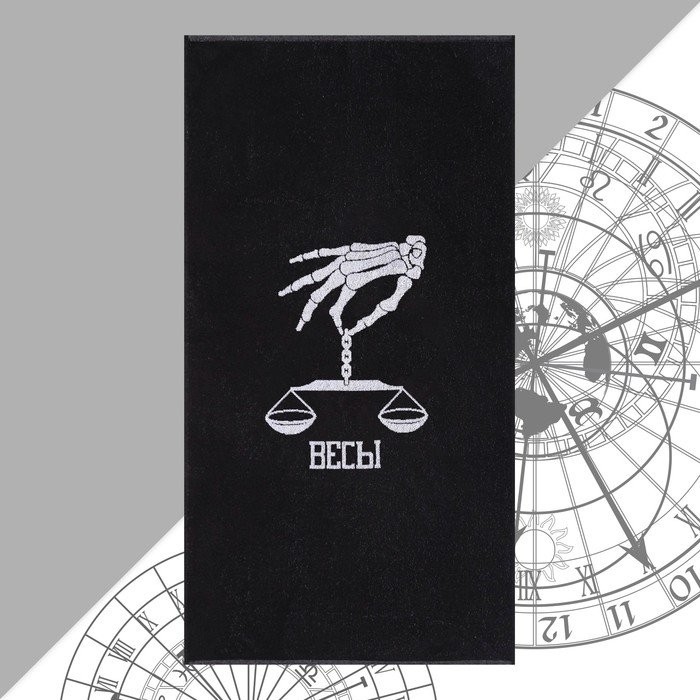 Полотенце махровое Этель «Знаки зодиака: Весы» чёрный, 67×130 см, 420 гр/м2, 100% хлопок