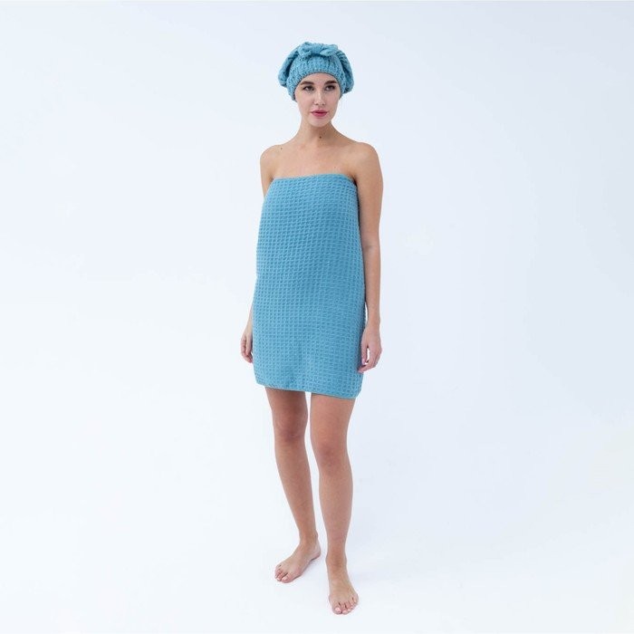 Набор для бани и ванной Этель «Вафля» полотенце 70*140 см+чалма 21*25 см, цв.синий