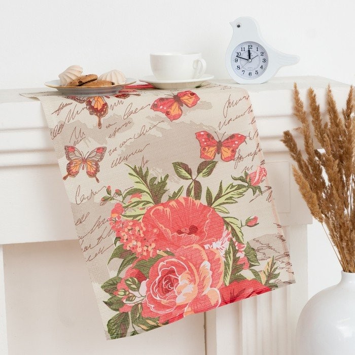 Полотенце 35×60 см, Винтажные розы (рис.1), песочный, вафля, 120 гр/м2, хлопок 100%