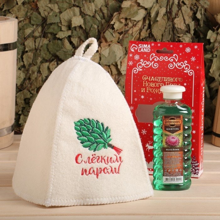 Подарочный набор Новый год Шапка «С легким паром» + Шампунь Репейник