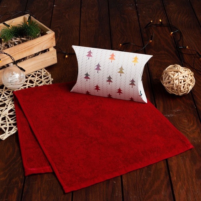 Полотенце подарочное в коробке Экономь и Я, Вид 1, 30*60 см, цв.бордовый, 100% хл, 320 г/м2