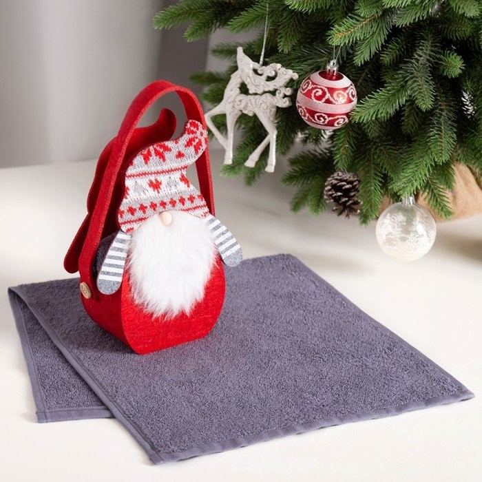 Полотенце в корзинке Экономь и Я «Гномик» 30*60 см, цв. серый, 100%хл, 320 г/м2