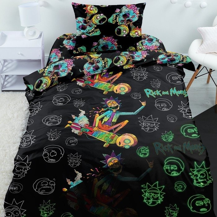 Постельное бельё 1.5сп Рик и Морти «Психоделика» 143×215, 150×214, 70×70−1шт, поплин 105г/м хл100%