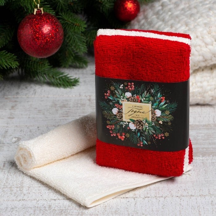 Набор махровых полотенец Этель «Всё сбудется» 30×30 см-3шт, 340гр/м2, 100% хлопок