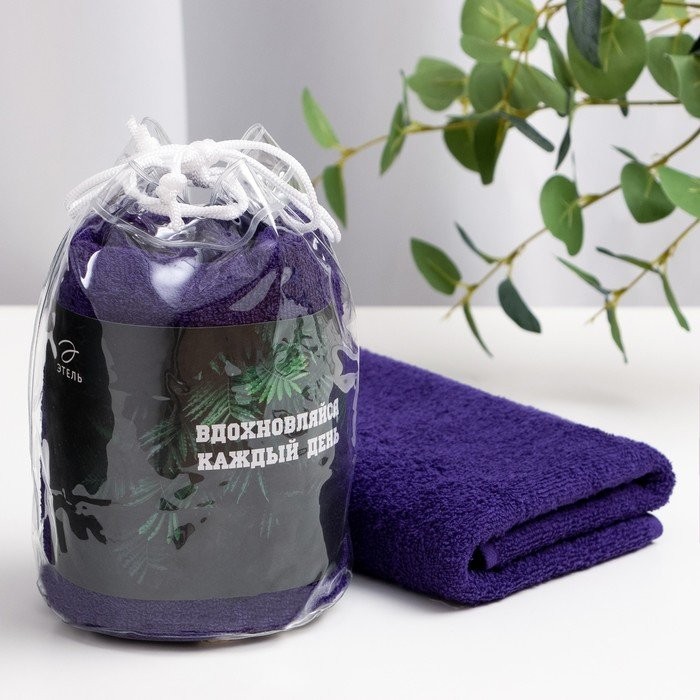 Полотенце подарочное Этель «Вдохновляйся» цв.фиолетовый, 50х90см, 100% хл, 340 г/м2