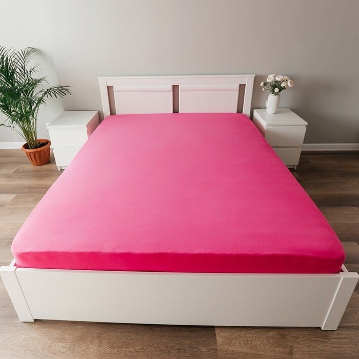 Трикотажная простынь на резинке 200х200х25см, фуксия кулирка, 120г/м хл100%