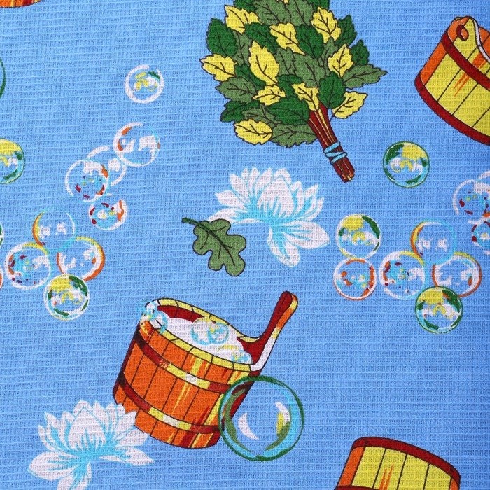 Полотенце «Баня» 80×150 см, голубой, 160 гр/м, вафля, хлопок 100% (в пакете)