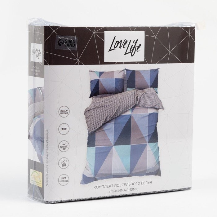 Постельное бельё LoveLife евро «Минимализм» 200*217см,225*240см,50*70см-2шт,100%хлопок,сатин,125г/м²
