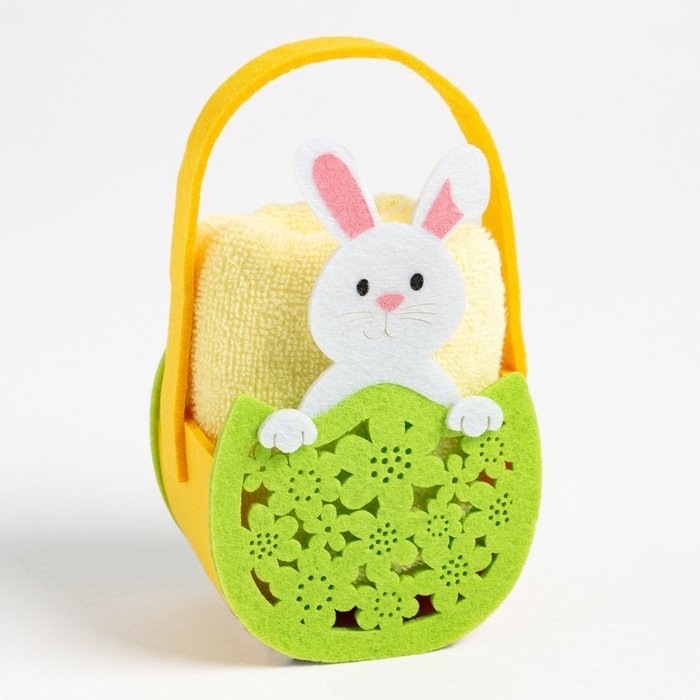 Полотенце пасхальное в корзинке Этель «Зайчик» 30*60см, цв.желтый, 100%хл, 320 гр/м2