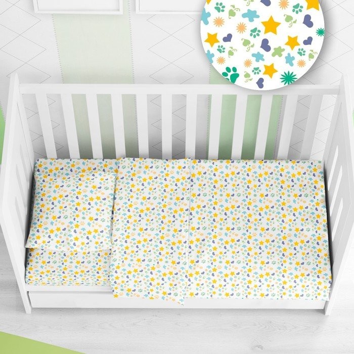 Постельное бельё детский Русский дом «Звездочки и лапки синий» 112×147, 100×150, 40х60см, бязь, 120 г/м,