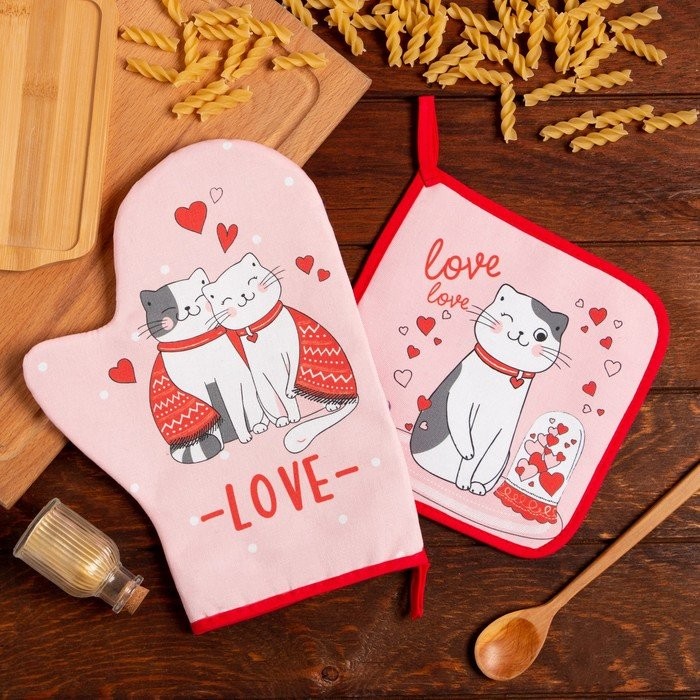 Набор кухонный Love, варежка-прихватка 20х28см, прихватка 19х19см, 100% хл