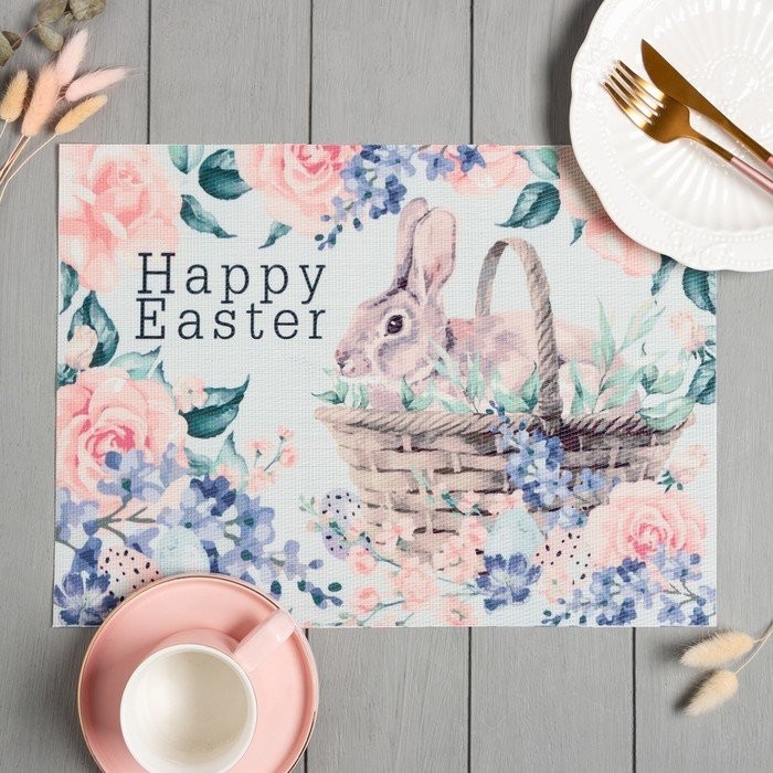 Салфетка на стол Доляна «Пасха» (зайчик в корзинке) ПВХ 40×29 см