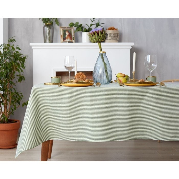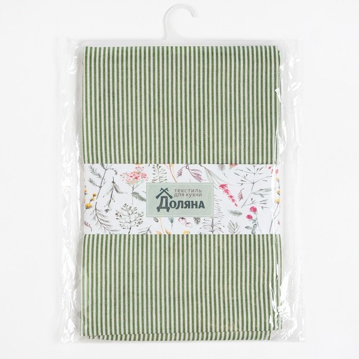 Скатерть Доляна 145х145см, Зеленая полоска, 100%пэ, рогожка 200 гр/м