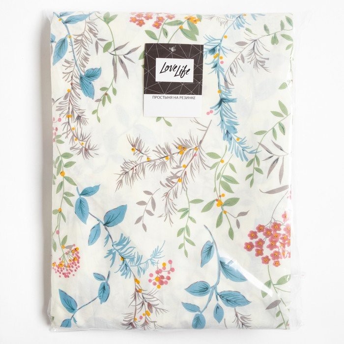 Простыня на резинке LoveLife 140*200*25см, «Flowers», 100% хлопок, сатин, 125г/м²