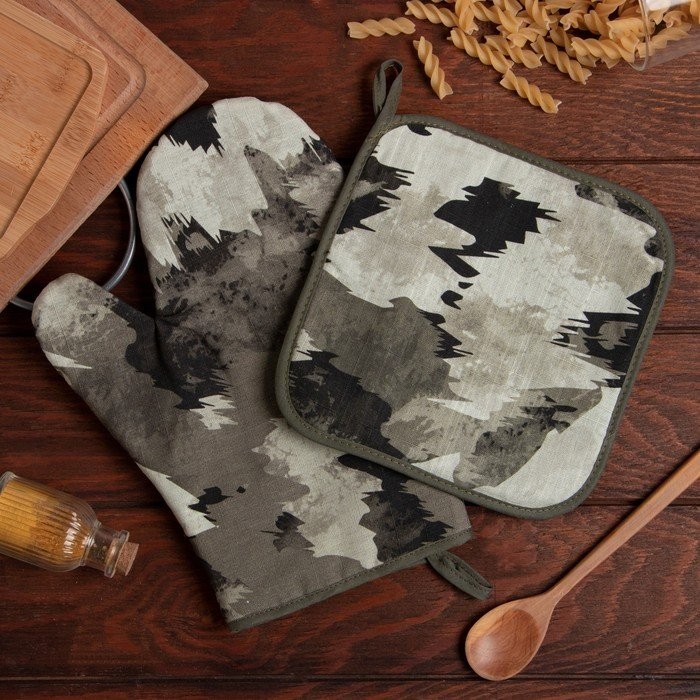 Набор Кухонный «Real hero», варежка-прихватка 20х28см, прихватка 19х19см, 100% хл