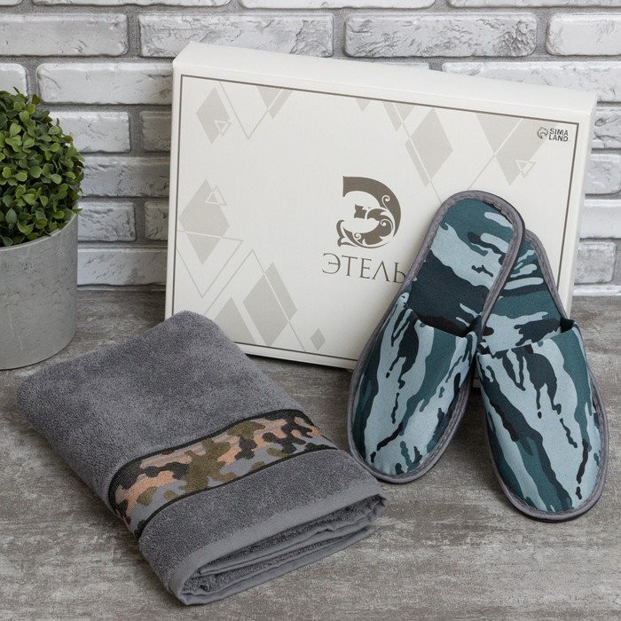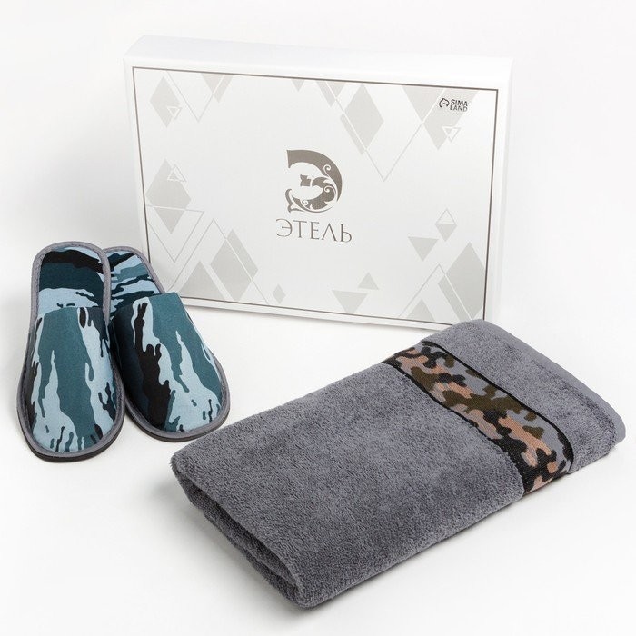 Набор подарочный Этель «Милитари Grey» полотенце 70*130 см+тапки муж 42 р-р