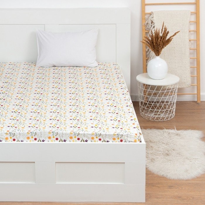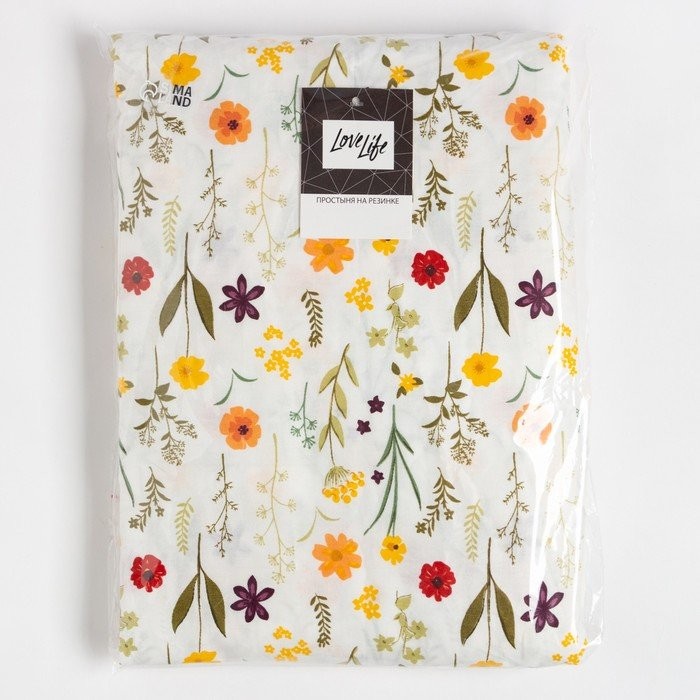 Простыня на резинке LoveLife 140*200*25см, «Цветочная поляна», 100% хлопок, сатин, 125г/м²
