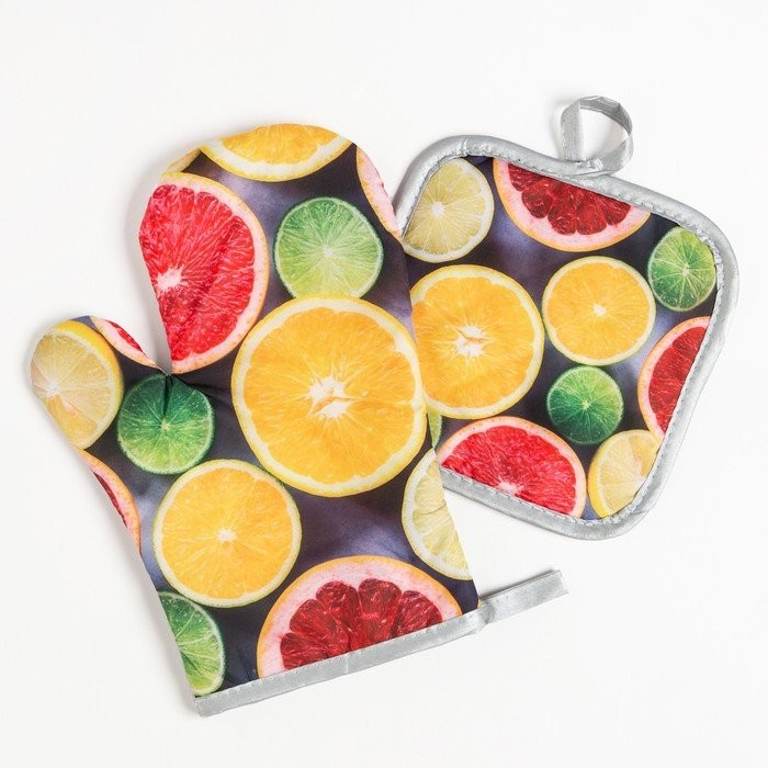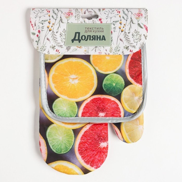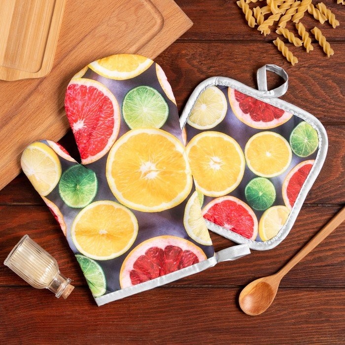 Кухонный набор (2 предмета) Доляна «Цитрусовые», прихватка 17×17 см, варежка 26×16 см, 100% п/э