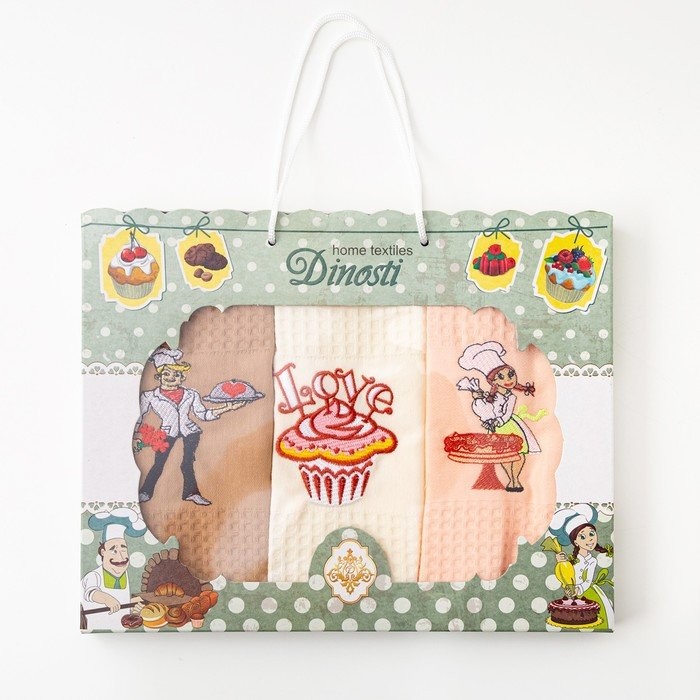 Набор кухонных полотенец в коробке 33*60 см-3 шт, Любовные истории, вафля, хл