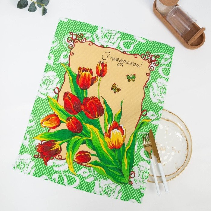 Полотенце в коробке 45×60 см, С праздником, салатовый, вафля, 160 гр/м2, хлопок 100%